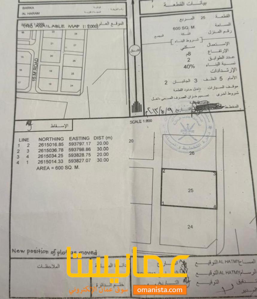 للبيع ارض سكنية ممتازة في بركاء الهرم وسطية رقم القطعة 25 | سوق عُمانيستا 2026