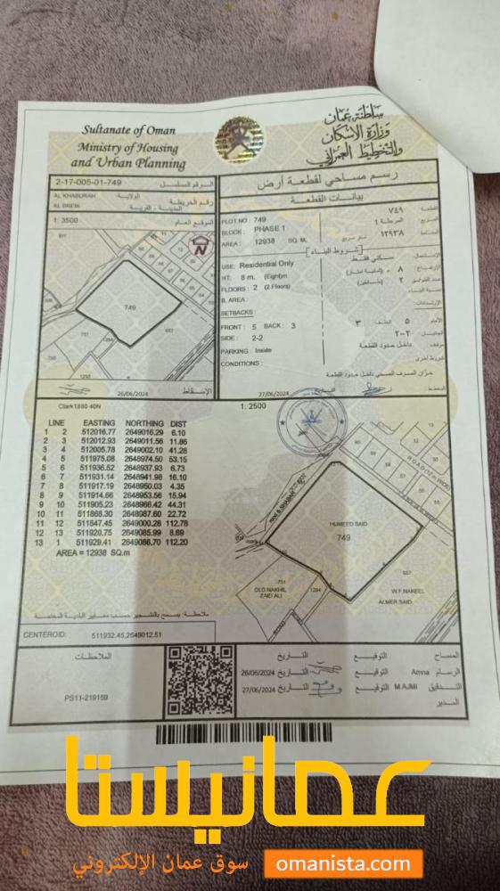 للبيع أرض سكنية ممتازه في الخابوره البريك,،