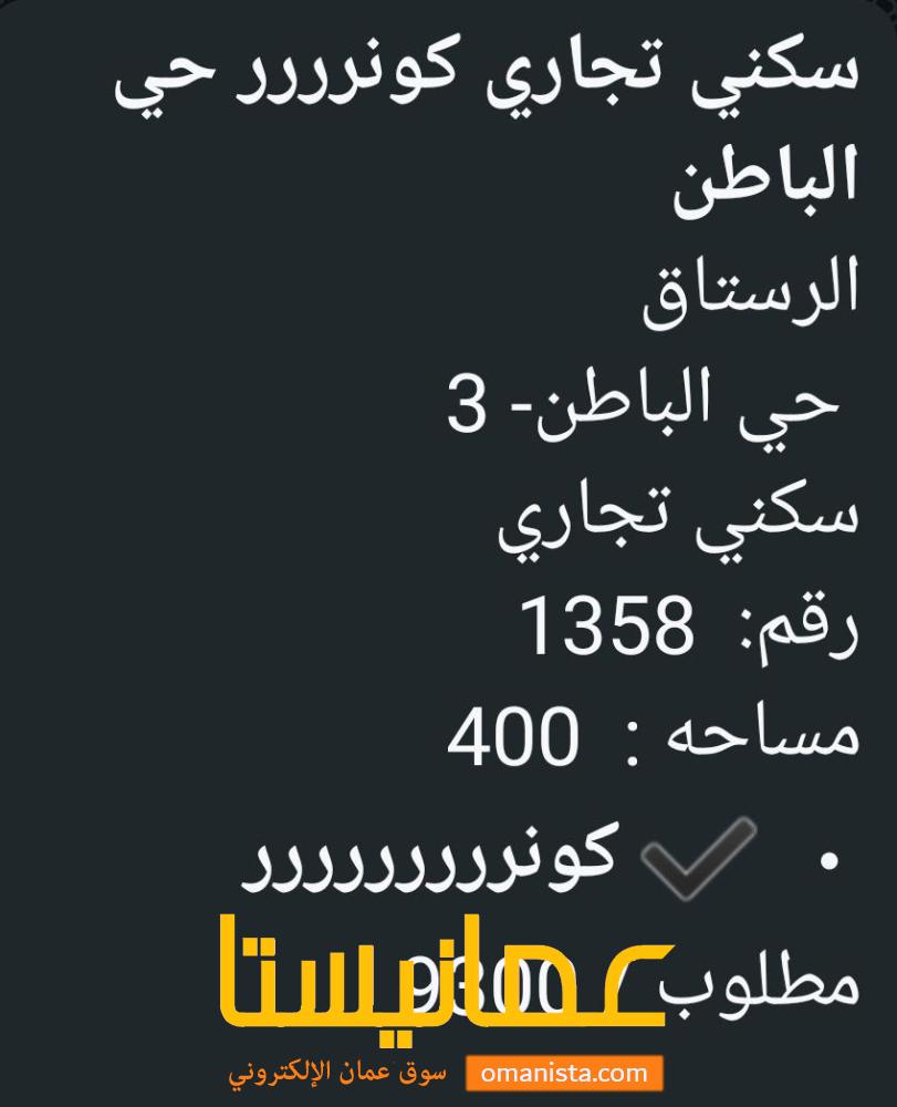 ارض سكني تجاري للبيع في الرستاق حي الباطن