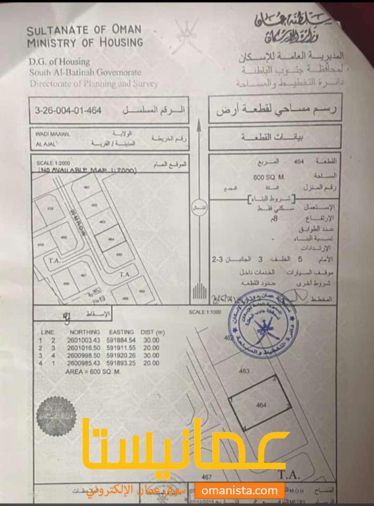 للبيع ارض سكنية ممتازة في وادي المعاول اللاجال وسطية رقم القطعة (464) .