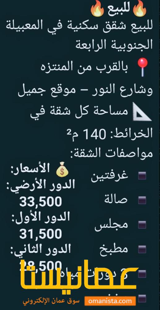 للبيع شقق سكنية في المعبيلة الجنوبية الرابعة