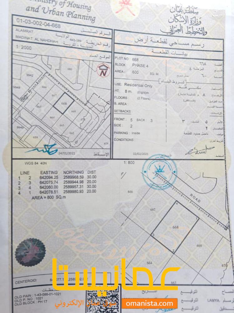 للبيع ارض سكنيه في العامرات مدينه النهضه مربع 17 | سوق عُمانيستا 2026