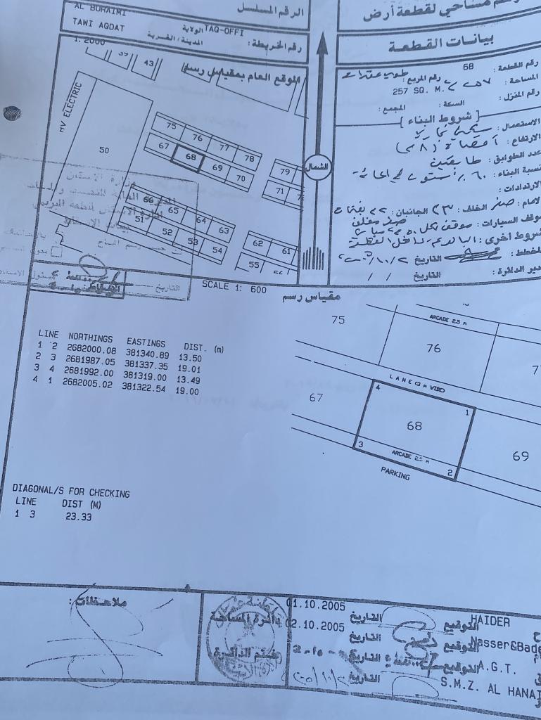 عدد الطوابق: حالياً طابق واحد، ومسموح لبناء طابقين