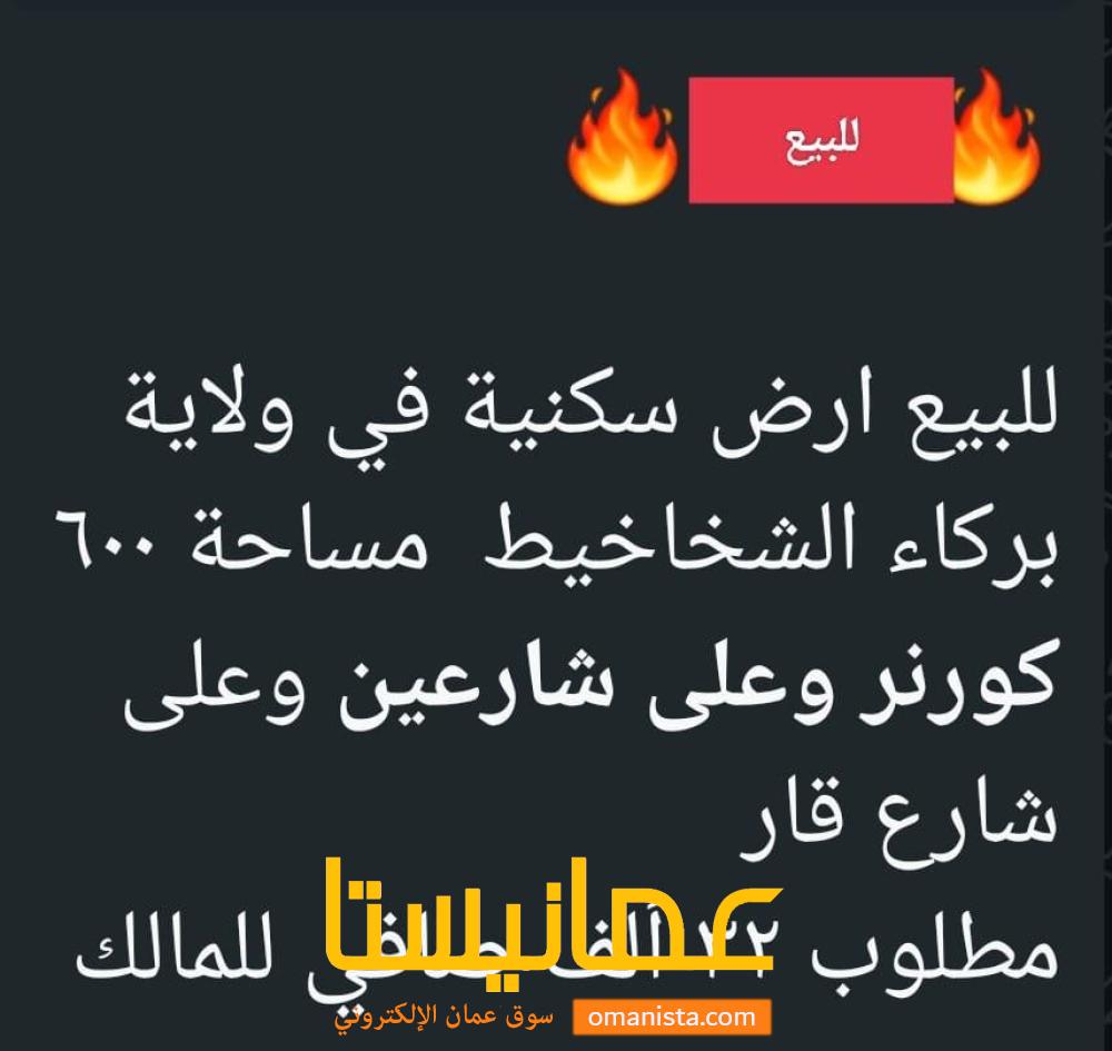 *🔥للبيع🔥* للبيع ارض سكنية في ولاية بركاء الشخاخيط مساحة ٦٠٠ *كورنر وعلى شارعين* وعلى شارع قار مطلوب ٣٢ ألف صافي للمالك https://omanreal.com/g/bdrfm 92180540