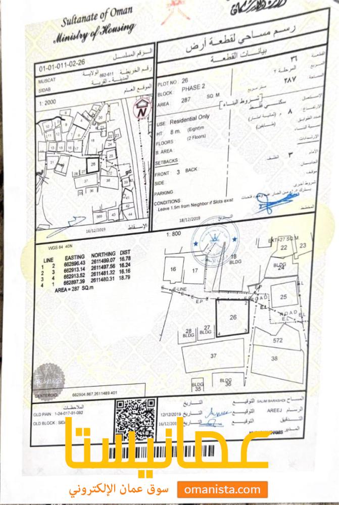 للبيع ارض سكنية ممتازة في السيب سداب وسطية رقم القطعة 26 | سوق عُمانيستا 2026