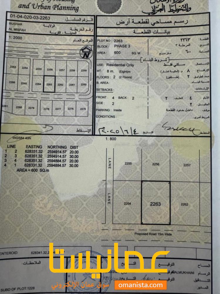 للبيع ارضان ليست شبك ممتازة في بوشر المسفاة وسطية – زاوية ، رقم القطعة (2263\2268)