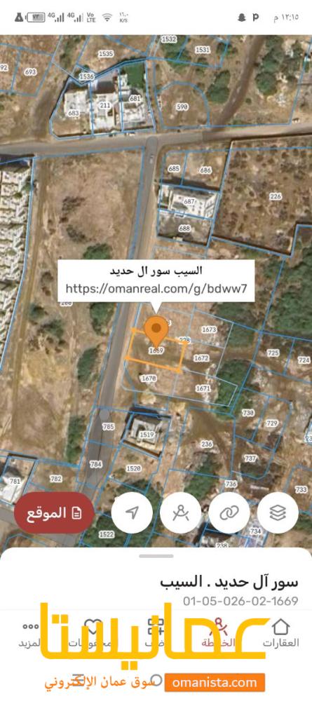 ارض سكنية السيب_ سور ال حديد رقم الأرض 1669 مساحة 600 متر وسطية على شارع مرصوف مستوية تماما جاهزة للبناء قريبة جدا من مشروع دار الزين *مطلـــــــــــــــــووب 47,500 الف صافي للمالك* https://omanreal.com/g/bdww7