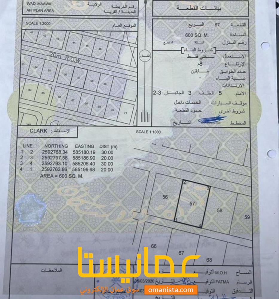 _ للبيع أرض سكنيه ممتازه في وادي المعاول مرتفعات أفي,،