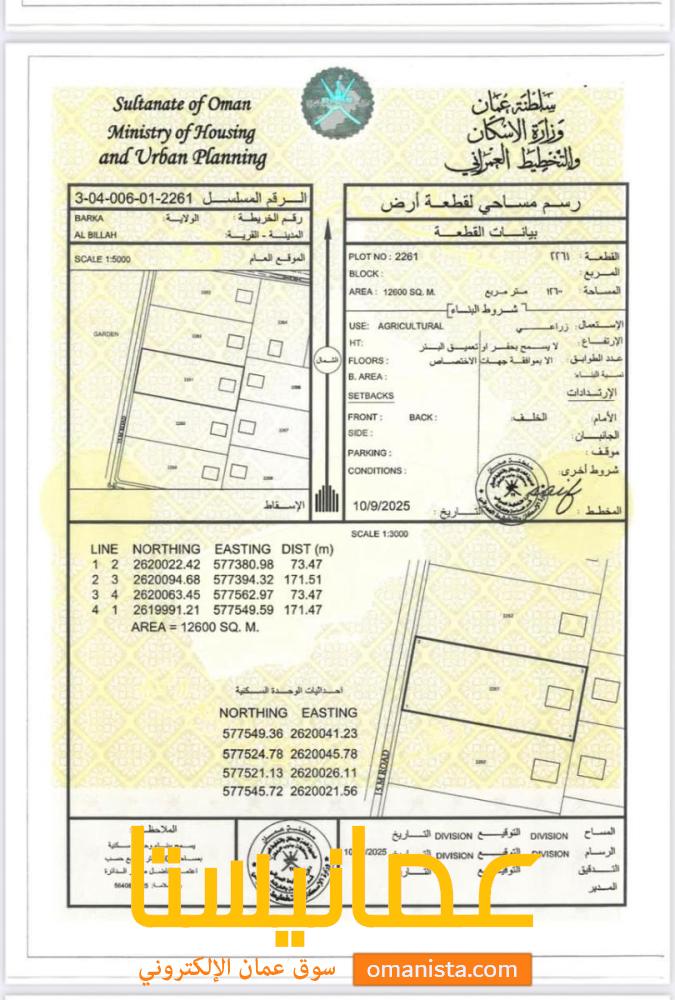 للبيع ارض زراعية ممتازة في بركاء العقدة جنوب وسطية | سوق عُمانيستا 2026