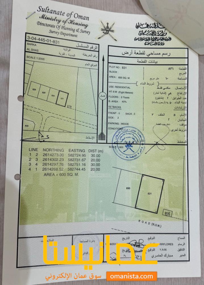 ارض سكنية للبيع في الدهس ولاية بركاء | سوق عُمانيستا 2026