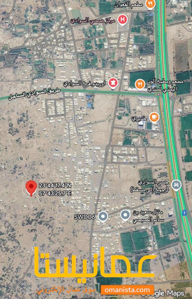 مساحة الارض 604 م² وسطية ،بالقرب من مسجد المجتبئ وبالقرب من شارع العام المزدوج قريبة من جسر السوادي رجعو الى مسقط ، ولا تبعد كثيرا من مركز صحي السوادي، فرصة للأستثمار ، الارض مستوية وحولها بعض المنازل القائمة و اخرى قيد الانشاء ، الخدمات متوفرة .