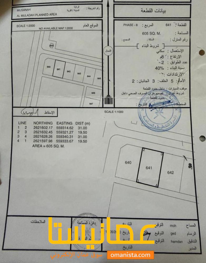 مساحة الارض 605 م² وسطية ،ملاصقة استراحة ،فرصة لعمل استراحتك الخاصة، فرصة للأستثمار ، الارض مستوية وحولها بعض المنازل القائمة و اخرى قيد الانشاء ، الخدمات متوفرة .