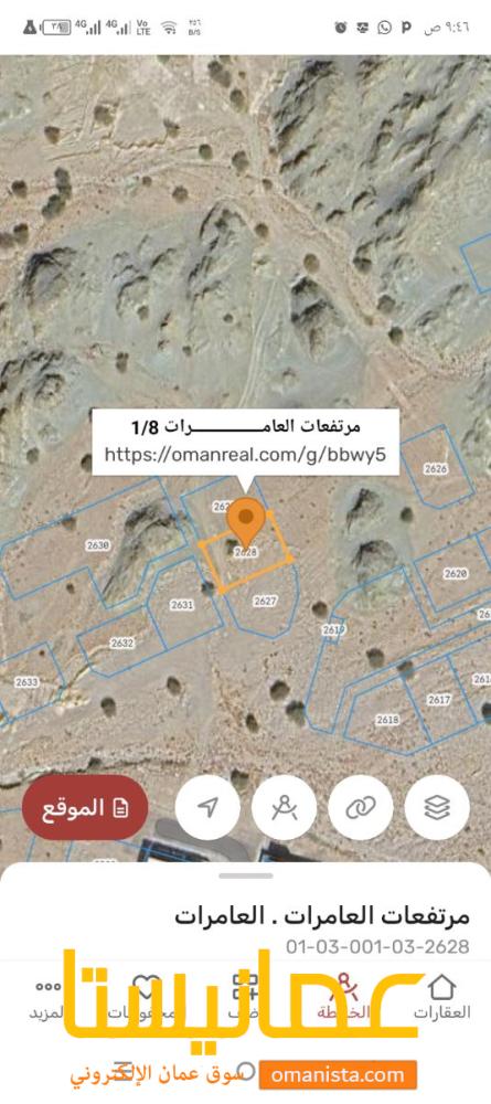 مرتفعات العامـــــــــــــــــرات 1/8 رقم الارض 2628 مساحة 600 متر وسطية خلفها سكة قرب المنازل القائمة مستوية تماما جاهزة للبناء *مطلـــــــــــــــــووب 32,000 ألف صافي للمالك* https://omanreal.com/g/bbwy5