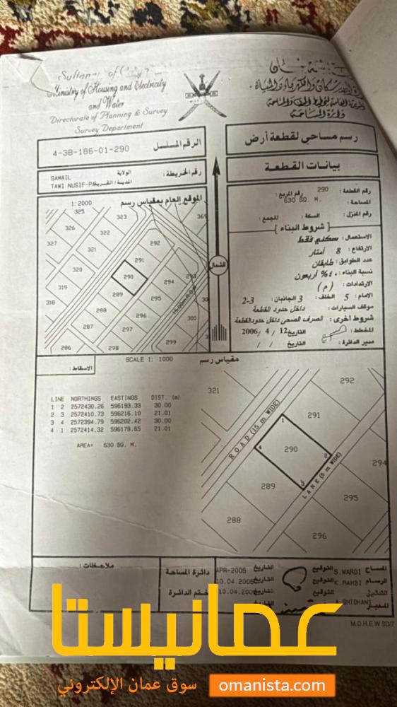 للبيع ارض سكنية ممتازة في سمائل طوي نصف وسطية ، رقم القطعة (290) .