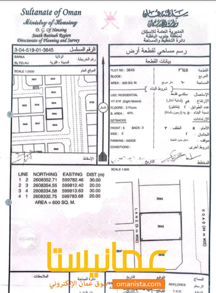_ مساحة الارض :( 600م²)