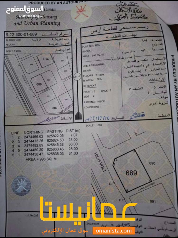 أرض للبيع الافلاج كونر المساحة 996