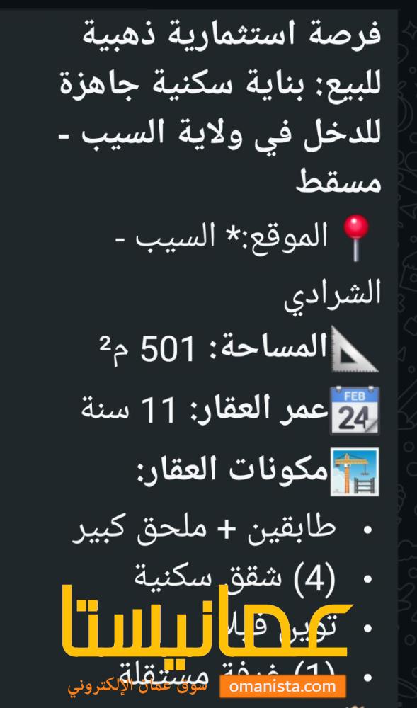 بنايه للبيع في السيب | سوق عُمانيستا 2026