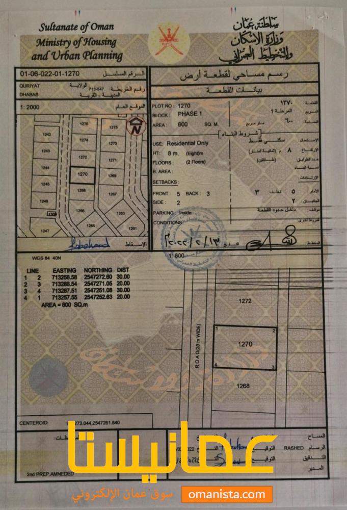 فرصه للاستثمار او بناء استراحه على الخط الأول من الشارع العام خلف محطة نفط عمان مباشرتا