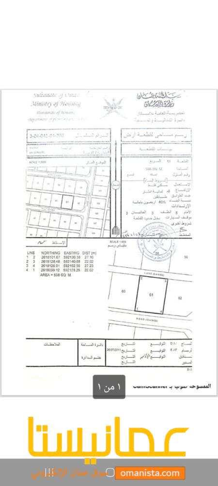 للبيع ارض سكنية ممتازة في بركاء الصومحان الشمال وسطية رقم القطعة (61) .