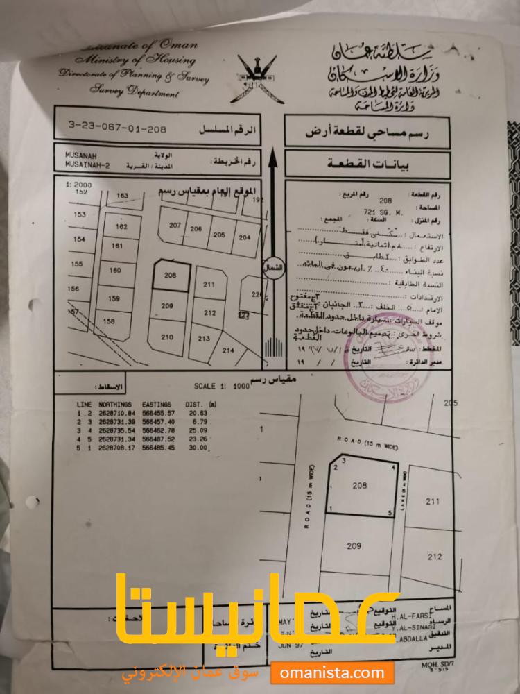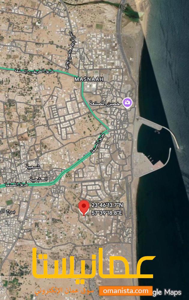 مساحة الارض 721 م² كونر مفتوحة من ثلاث جهات ،بالقرب من مسجد الصينعة ومن شاطئ المصنعة ، فرصة للأستثمار ، الارض مستوية وحولها بعض المنازل القائمة و اخرى قيد الانشاء ، الخدمات متوفرة .