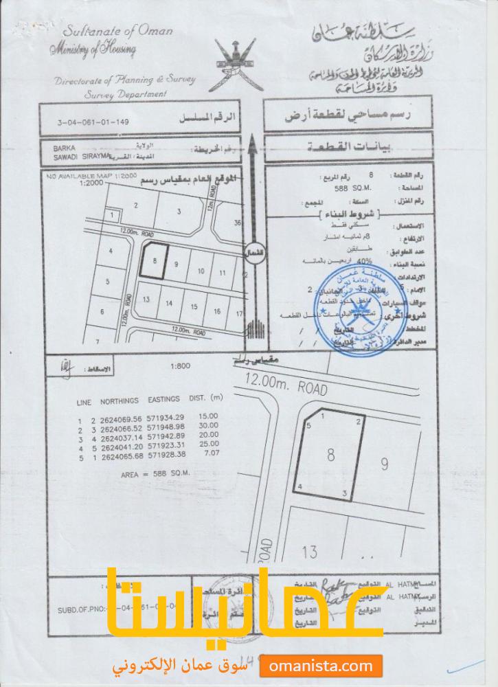 مساحة الارض 588 م² كونر مفتوحة من ثلاث جهات شارعين وسكتين ،ثاني خط من شارع الخدمات ومن شارع العام المزدوج طريق السلطان قابوس وبالقرب من جسر شارع العام ومن مكة هايبر ماركت ، فرصة للأستثمار ، الارض مستوية وحولها بعض المنازل القائمة و اخرى قيد الانشاء ، الخدمات متوفرة .