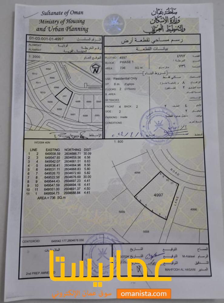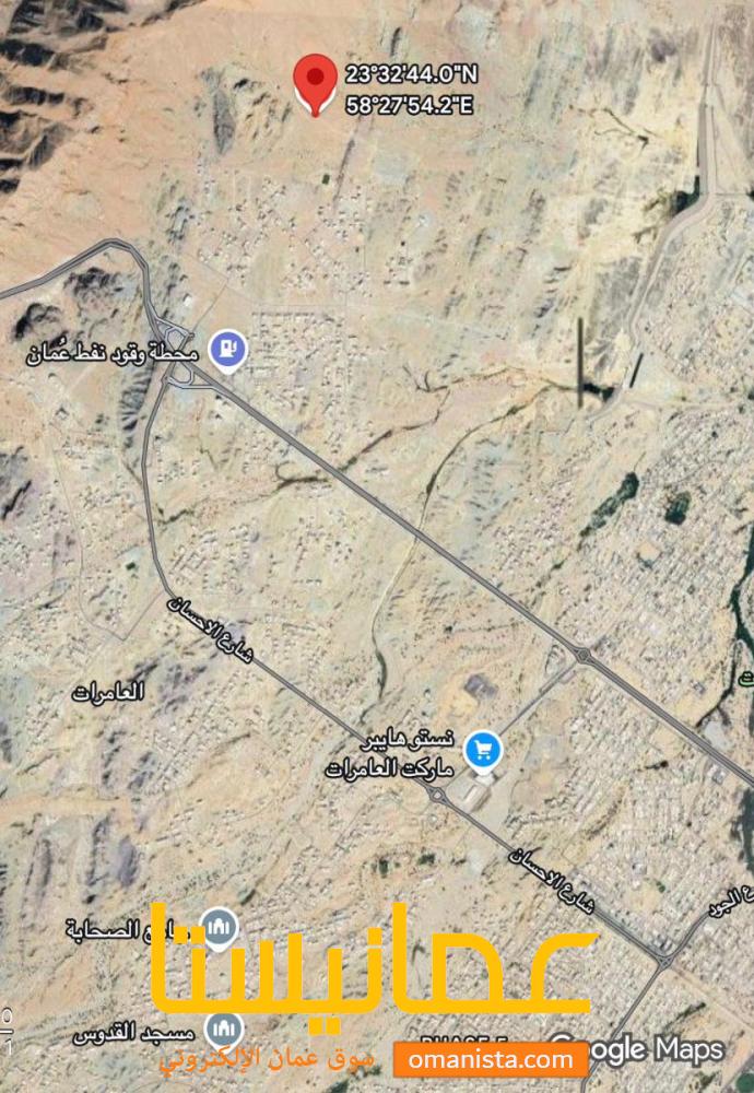للبيع ارض سكنية ممتازة في مرتفعات العامرات التاسعة زاوية رقم القطعة (4997) .