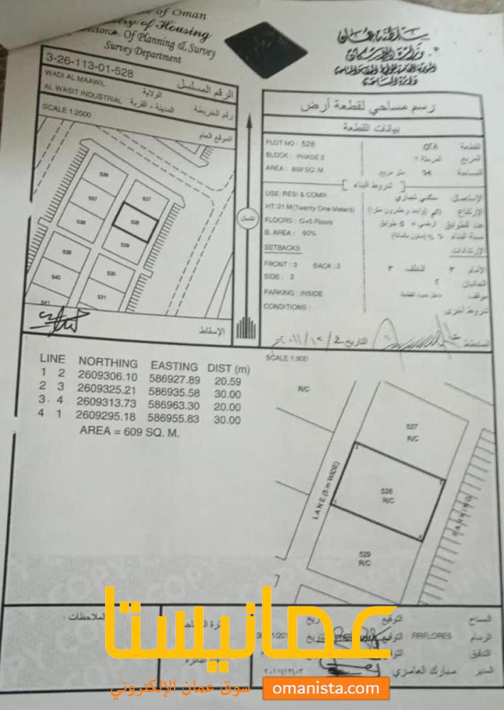 للبيع ارض سكنية تجارية ممتازة في وادي المعاول صناعية وسطية | سوق عُمانيستا 2026