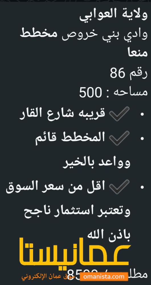 ارض في ولاية العوابي للبيع | سوق عُمانيستا 2026