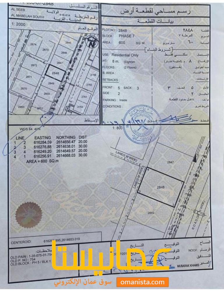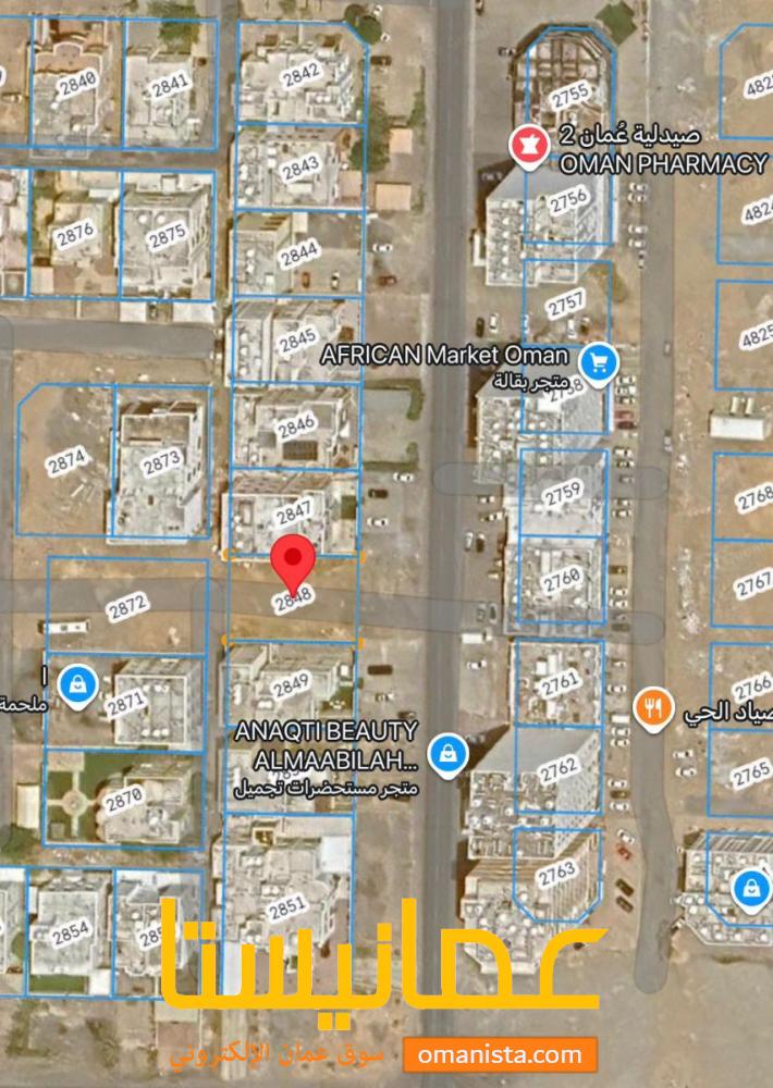 للبيع ارض سكنية ممتازة في السيب المعبيلة الجنوبية 1\5 وسطية رقم القطعة (2848) .