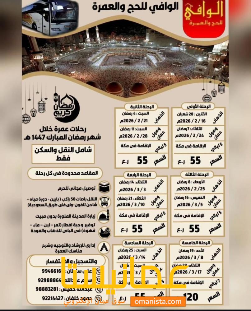 شاهد إعلانات في الوافي للحج والعمرة | سوق عُمانيستا 2026