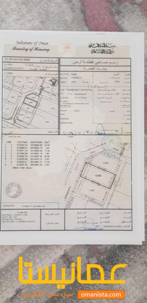 للبيع ارض سكنية تجارية ممتازة في المعبيلة الجنوبية وسطية، رقم القطعة (4086) .