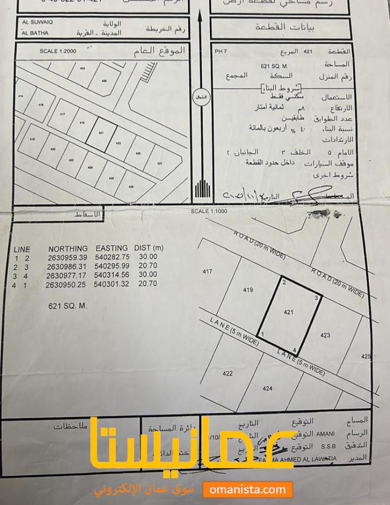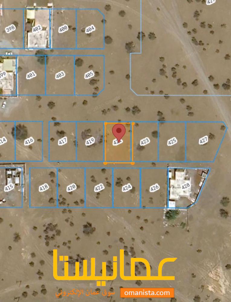 للبيع ارض سكنية ممتازة في السويق البطحاء السابعة وسطية ، رقم القطعة (421) .