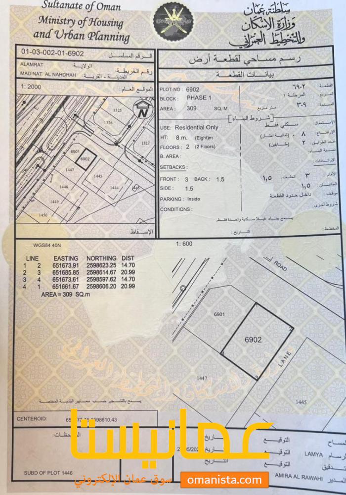 للبيع ارض سكنية ممتازة في العامرات الخامسة زواية | سوق عُمانيستا 2026