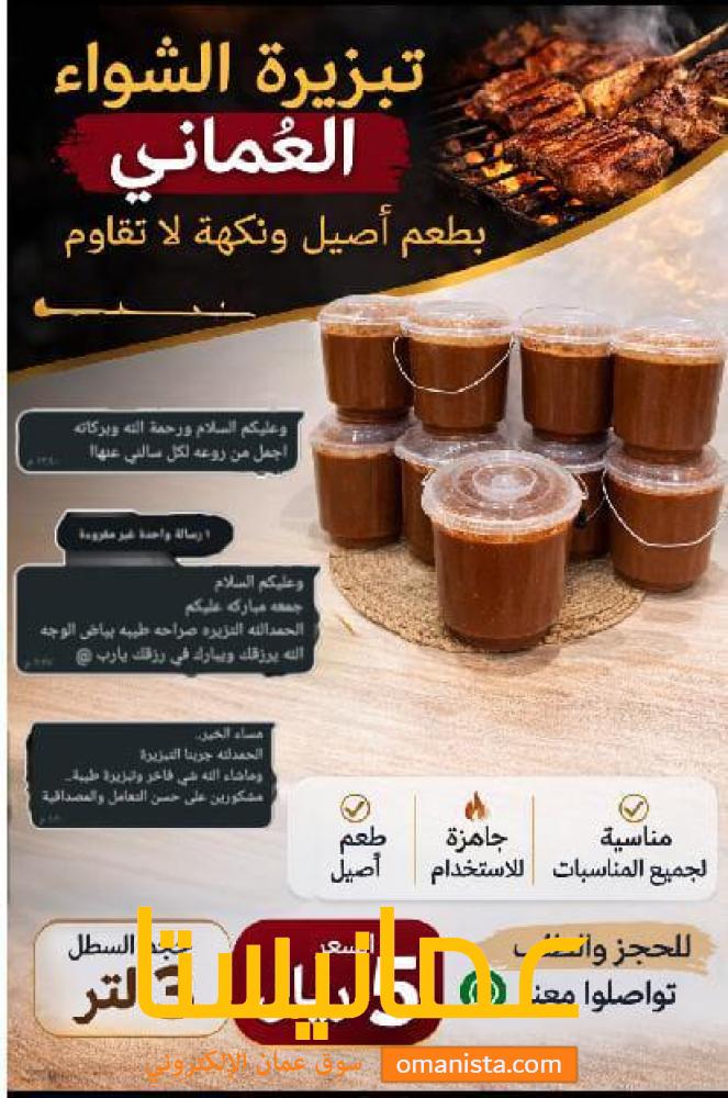 🌟 تبزيرة الشواء العماني متوفرة الآن 🌟 أضف نكهة مميزة لشوائك مع تبزيرة الشواء الأصيلة. طعم رائع وجودة عالية 😋 📦 الحجم: سطل/٣لتر 💰 السعر: ٥﷼ 📲 للطلب:https://api.whatsapp.com/send?phone=96891272559