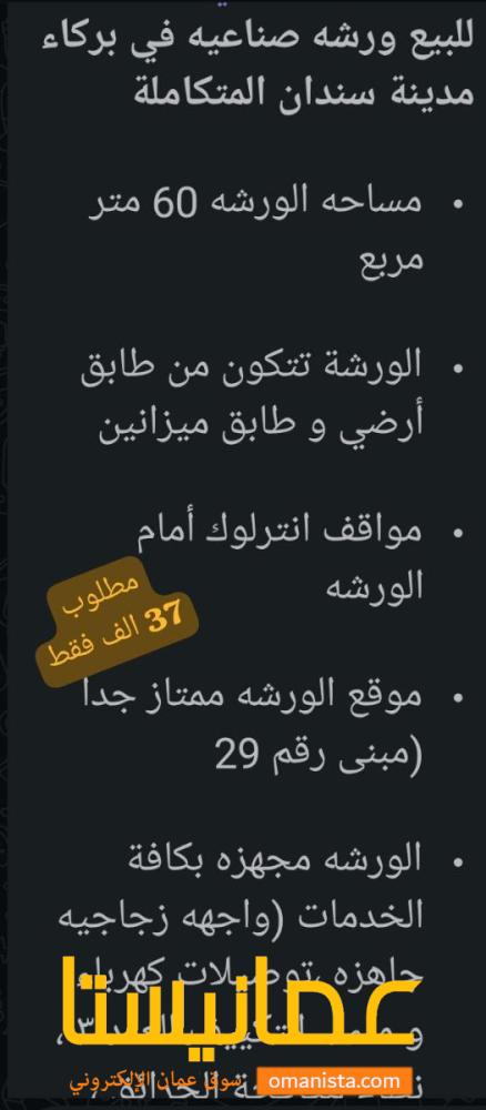 *ورشه صناعيه في بركاء مدينة سندان المتكاملة*