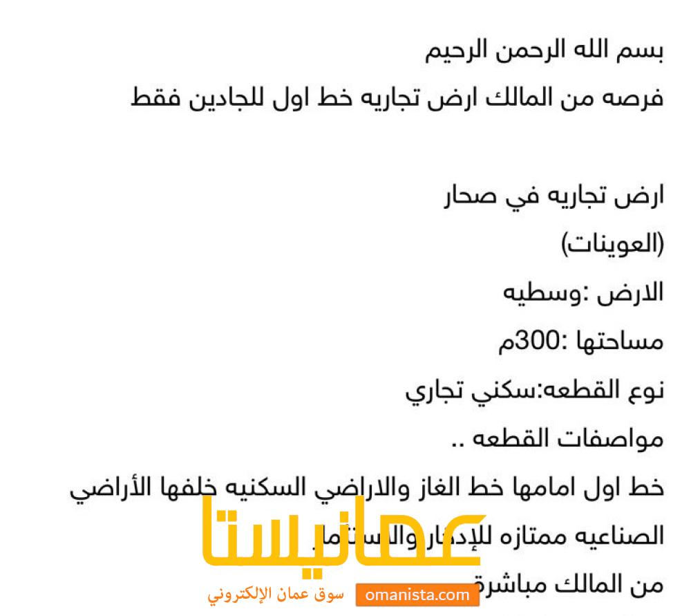 شاهد إعلانات في ارض تجاريه للبيع العوينات | سوق عُمانيستا 2026