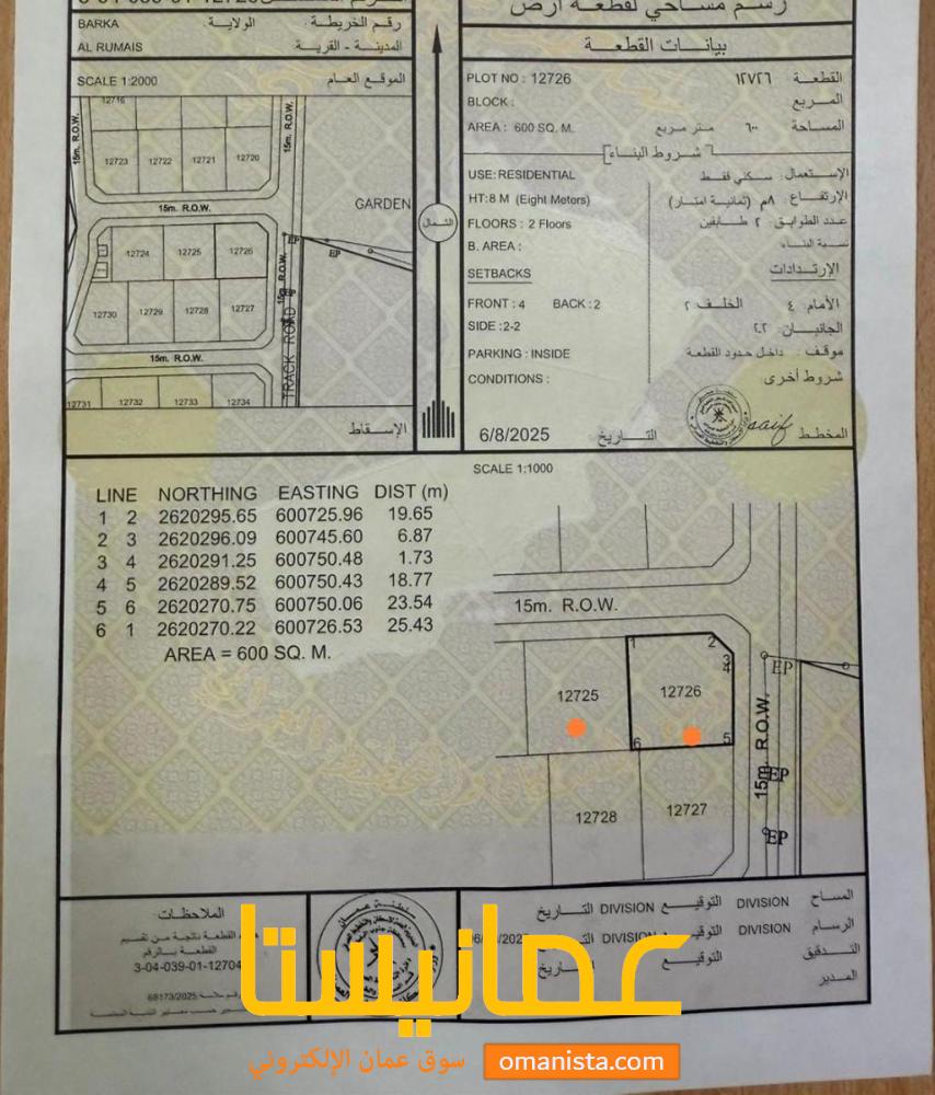 مساحة الأرض :( 600+600م²)