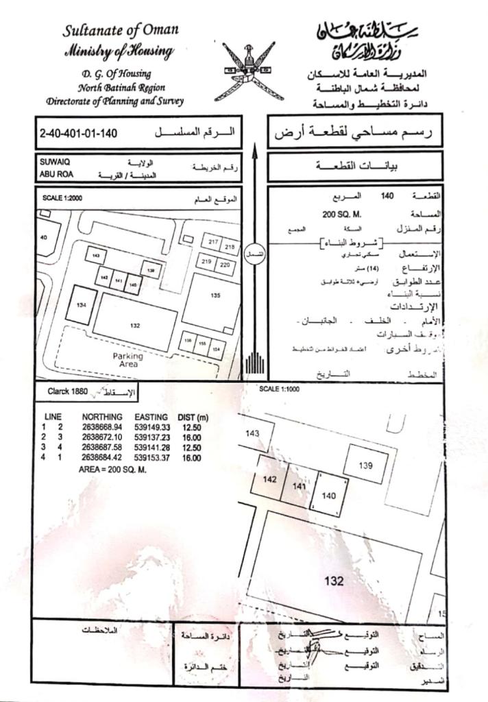 أرض سكني تجاري 200 متر مربع من المالك مباشرة. ارضي+ثلاثة طوابق حسب الكروكي في ولاية السويق بين جزماء وبورغوة على الشارع الرئيسي مباشرة وموقع زاويه حيث لها ثلاثة مخارج الإمام والخلف وجهة الشرق ومقابل مصلى العيد وبجانب مغسلة ملابس وقريبة جدا من سوبرماركت التاج ومغسلة سيارات وكفيتيريا. المطلوب( 14,000 ) ريال عماني. للتواصل مع المالك عبر الوتس اب( +971508287823 )