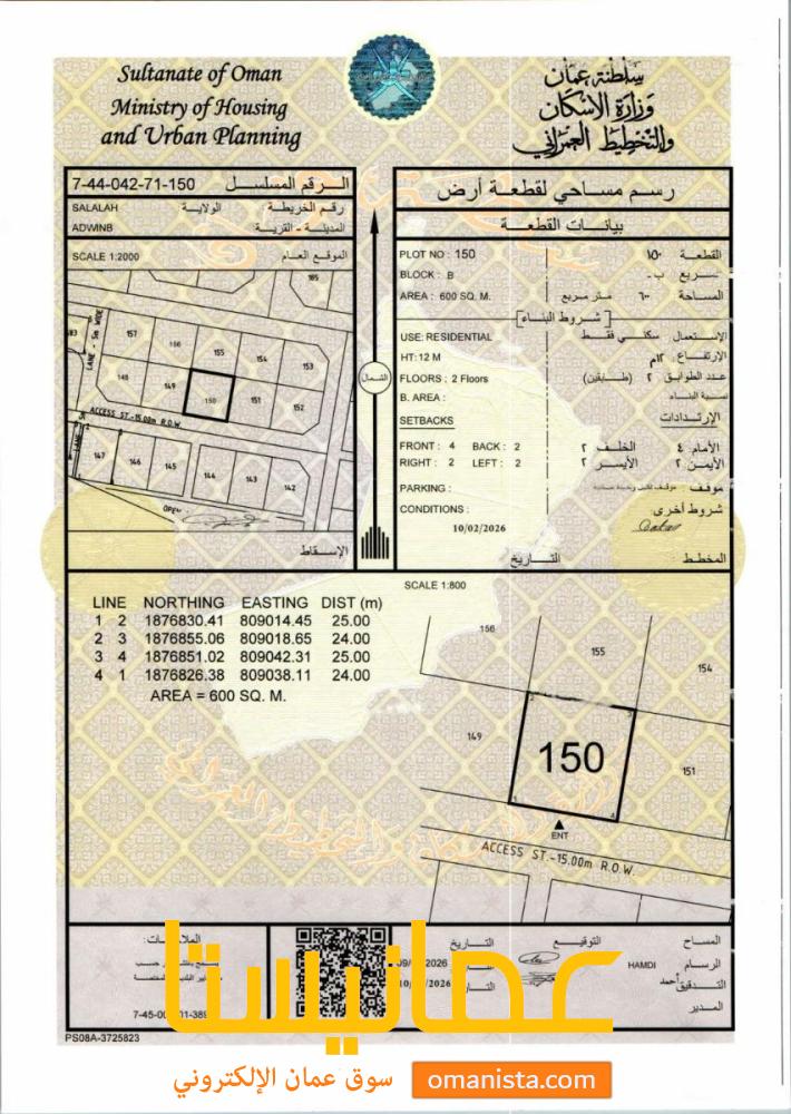 للبيع ارض سكنيه في صلاله عدونب | سوق عُمانيستا 2026