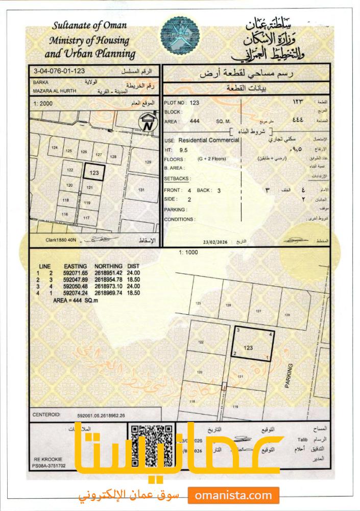 للبيع ارض سكني تجاري في بركاء مزارع الحرث | سوق عُمانيستا 2026