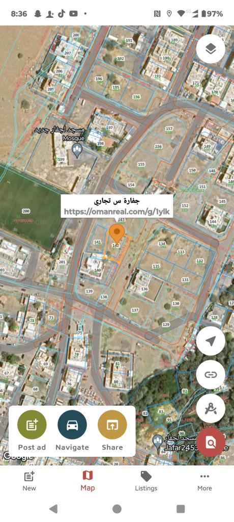 ✨للبيع ارض سكني تجاري في بوشر الجفار (الانصب)قريبة من وحدة شرطة المهام الخاص لانصب.