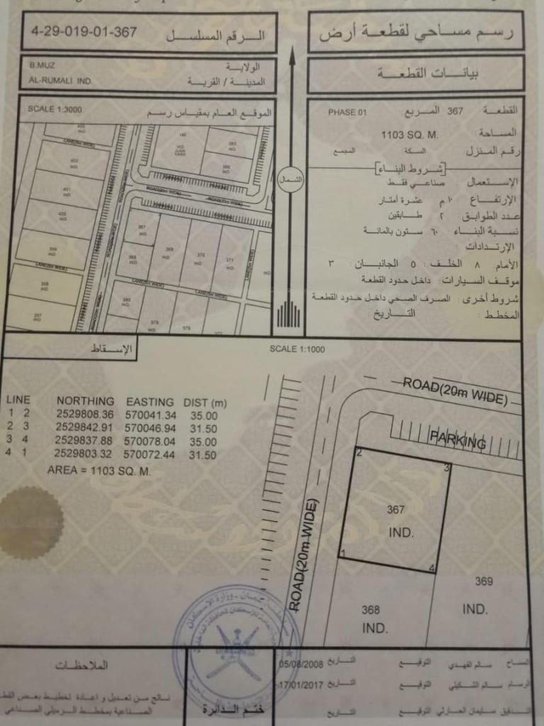 رقم الارض367مساحة1103م²