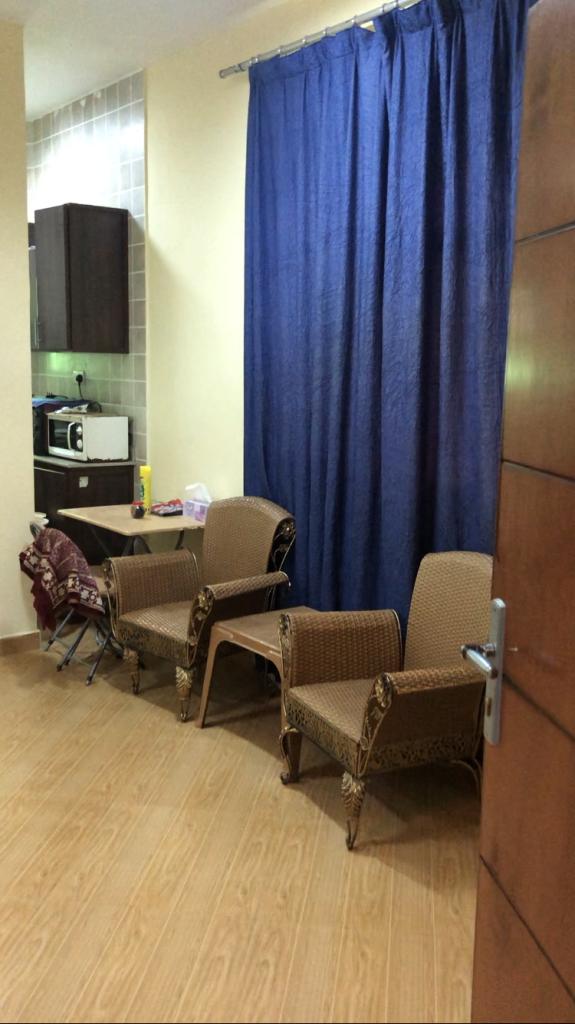 شقة استديو غرفة وصالة وحمام ومطبخ. كذلك يوجد لدينا سيارات للايجار اليومي.