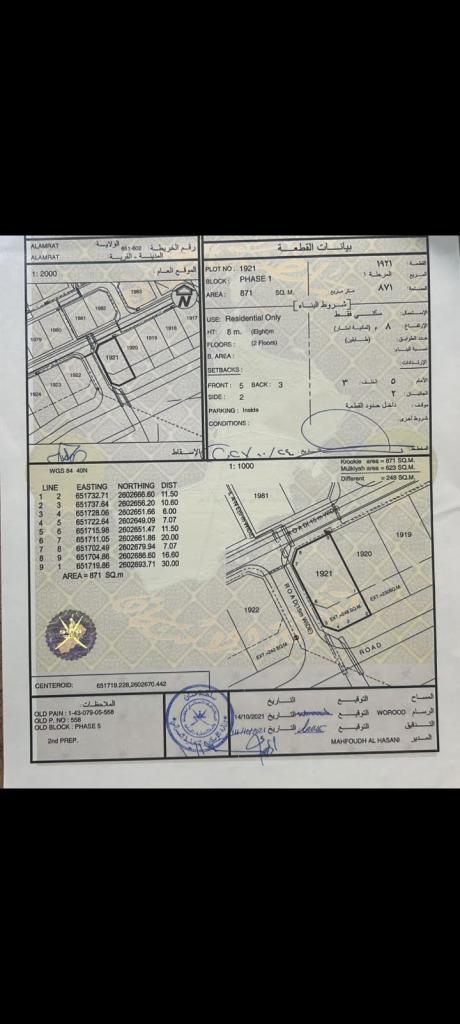للبيع ارض سكنيه مرتفعات العامرات الاولى سوبر كونر