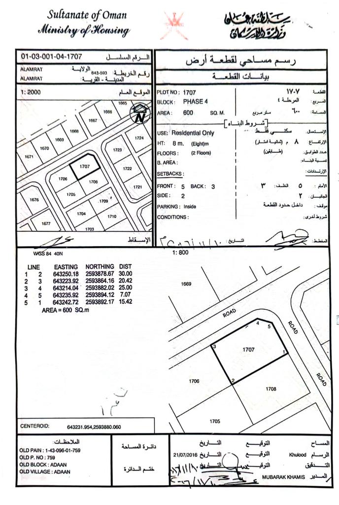 رقم القطعة: 1707.