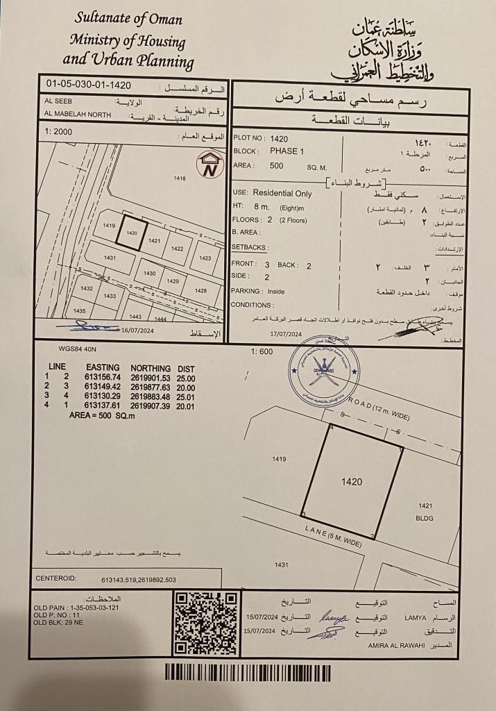 مساحة الارض ٥٠٠ وقريب جميع الخدمات ( مدارس وبقالة وجامع وحلاق وكي ملابس ومقاهي)