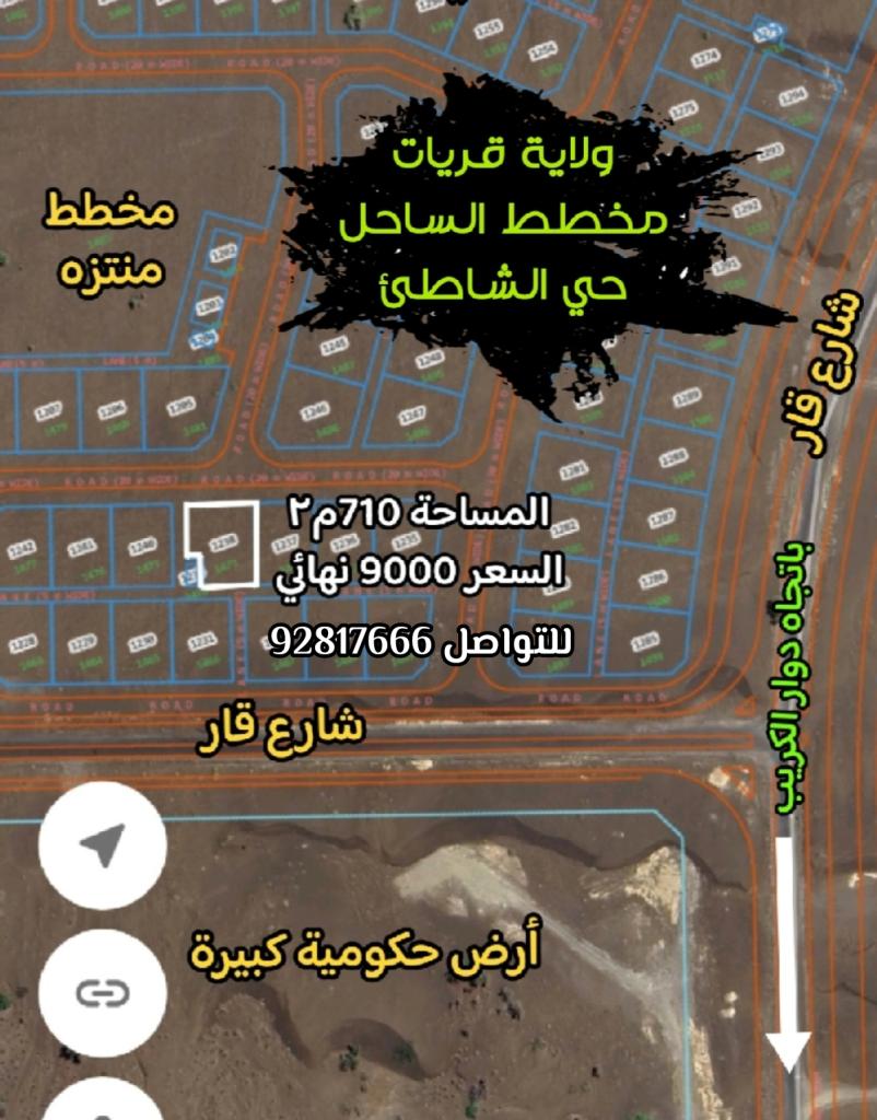 [ قريات الساحل مساحة 710 موقع مميز وثاني خط من الشارع القار]