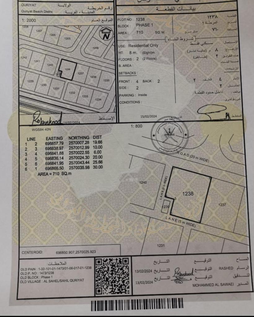 [ قريات الساحل مساحة 710 موقع مميز وثاني خط من الشارع القار] | سوق عُمانيستا 2025
