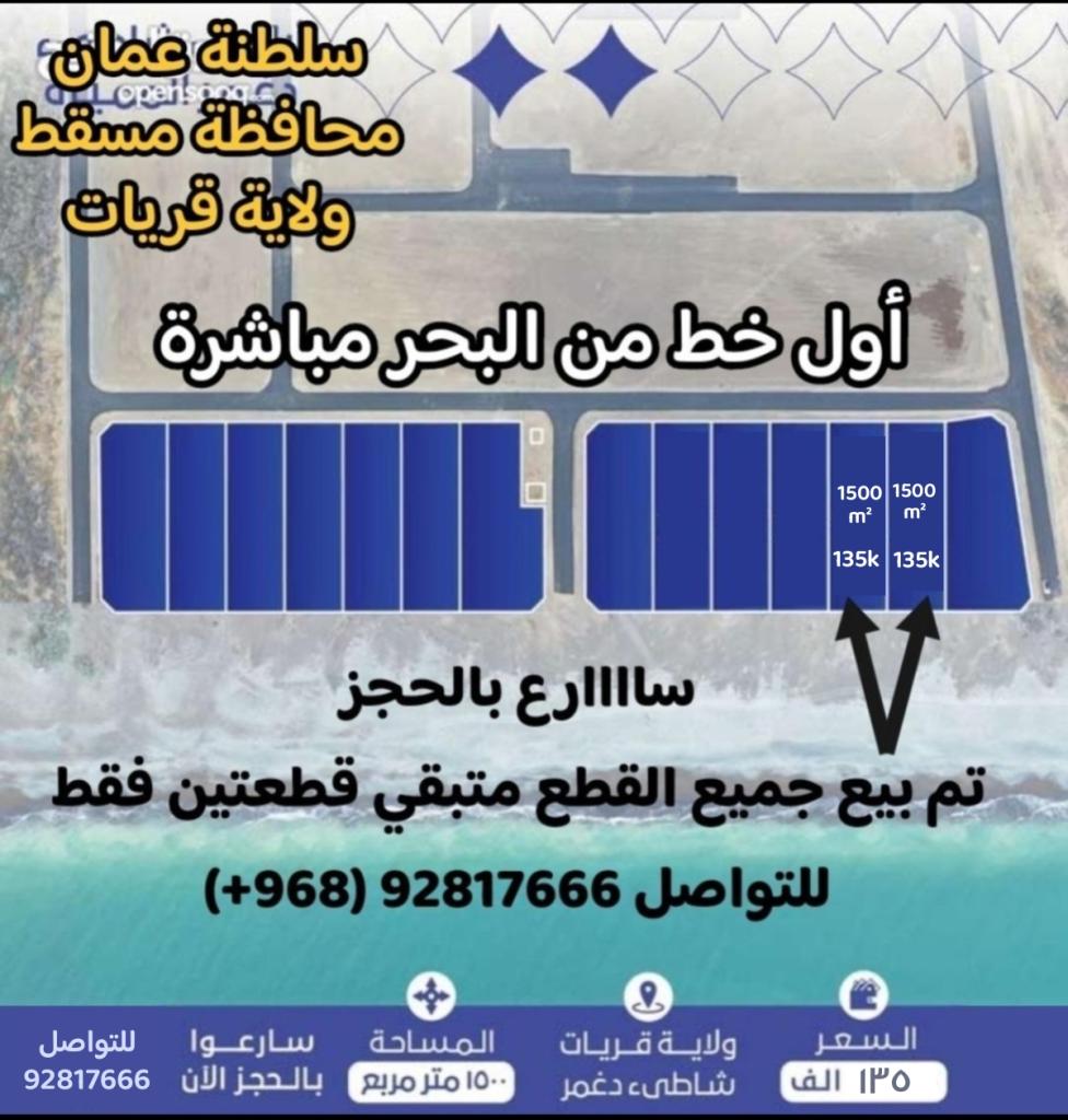 [[ أرضين شبك أول خط من البحر مساحة كبيرة ]] | سوق عُمانيستا 2025