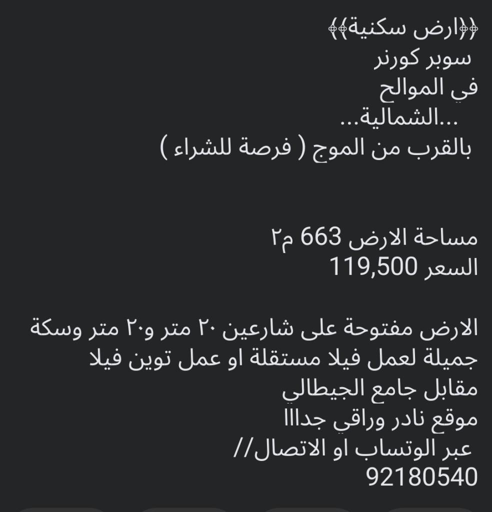 مساحة الارض 663 م٢